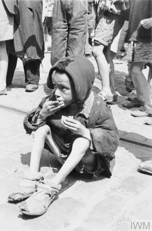 A dying Jewish child begging in the street. Warsaw ghetto. Summer 1941. IWM