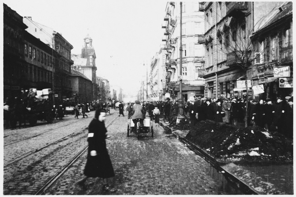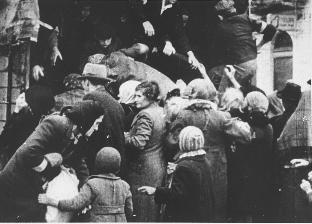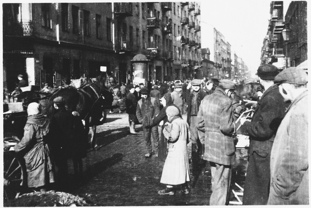 A crowed street in the Warsaw ghetto, 1942. USHMM