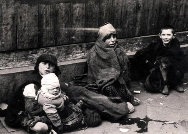 Dying father with his children lying on the street. Warsaw ghetto. 1941. IWM