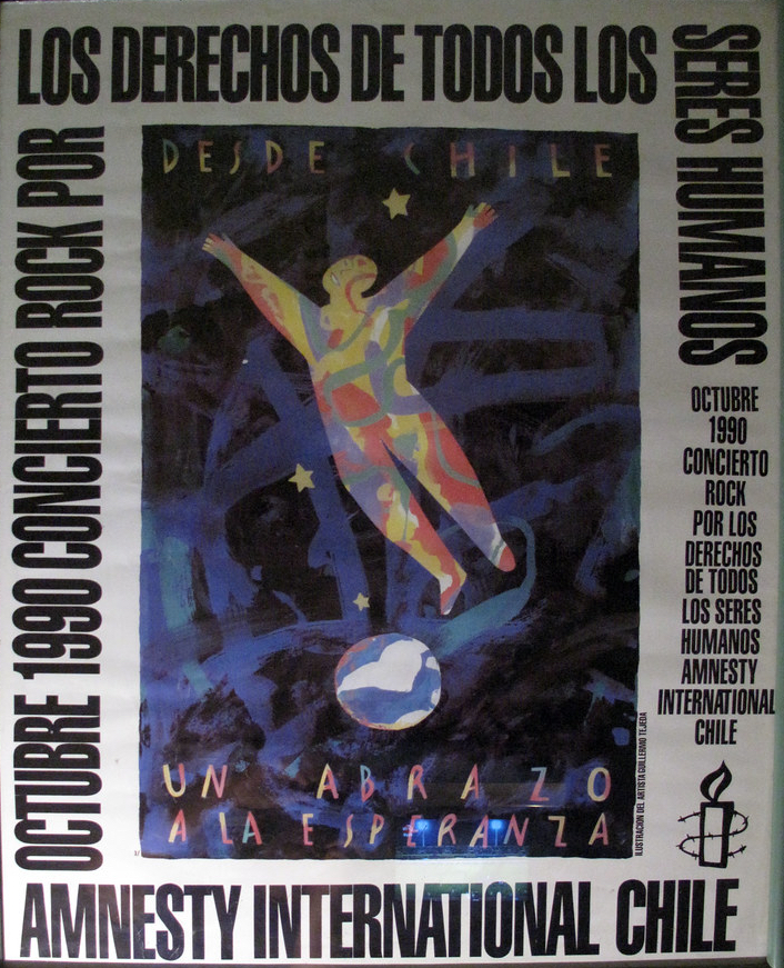Póster del legendario concierto de Amnesty International Chile, 1990: “Desde Chile, un abrazo a la esperanza”. Ilustración de mi padre, Juan Guillermo Tejeda Marshall